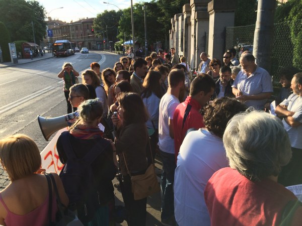 Bologna, 1 lug. – “Fuori i pretacci dalle mie mutande” da una parte; “Ave Maria piena di grazia” dall’altra. Come ogni martedì da qualche settimana a questa parte, anche questa mattina si è tenuta la protesta contro le sedute di preghiera anti abortista della comunità Papa Giovanni XXIII.