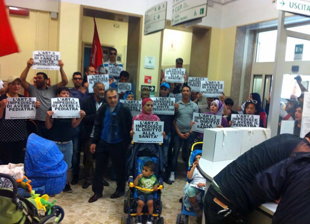 Questa mattina gli occupanti di Social Log hanno occupato l’anagrafe sanitaria di via Montebello. Al centro della protesta l’impossibilità di accedere al medico e al pediatra di famiglia e alle visite specialistiche con agevolazione senza la residenza, negata dall’art. 5. In particolare, ci spiega Luca Simoni di Social Log, il problema colpisce i neonati, che non riescono a vaccinarsi, a causa di questo vuoto giuridico.