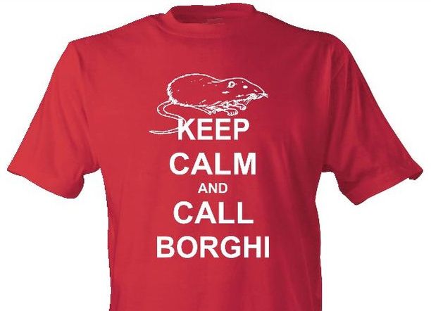 Tra un post ironico e l’altro a qualcuno viene l’idea: “Proviamo a fare qualcosa per raccogliere soldi per aiutare il comune a risollevarsi”. Ed ecco nascere le magliette rosse con il tormentone “Keep calm” opportunamente declinato: “Keep calm and call Borghi”. A coronare il tutto, al posto dell’originale corona, il simbolo di questa alluvione in terra d’Emilia: una nutria.