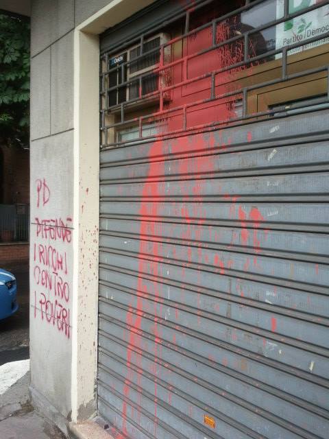 Bologna, 16 giu. – Ancora un circolo del Partito democratico imbrattato. Questa volta è capitato, nella notte da sabato e domenica, al circolo Berlinguer Moro di via delle Grazie, quartiere Lame. Contro la serranda un lancio di vernice rossa e una scritta sul muro accanto: “Il Pd difende i ricchi contri poveri”.