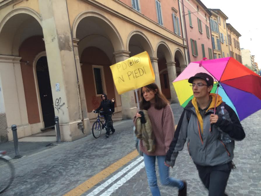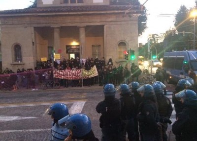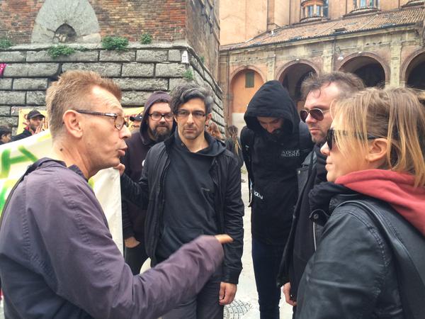 Mentre la polizia municipale è impegnata nella muratura del cassero, il collettivo è partito in corteo verso le Due Torri. Il collegamento alle 7.50 del nostro inviato Giovanni Stinco.