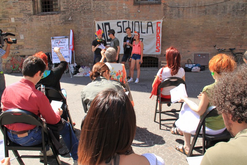 “Quella di oggi è un’iniziativa che va avanti da circa tre-quattro anni”, spiegano gli insegnanti, e che “solitamente si tiene di fronte al Provveditorato agli Studi proprio nel giorno della somministrazione”. È organizzata da Cobas e dal Coordinamento precari della scuola di Bologna in sostegno allo sciopero dei lavoratori di scuole medie e superiori, per chiedere non solo “l’eliminazione dei quiz Invalsi, ma quest’anno anche perché vogliamo il ritiro del ddl sulla Buona Scuola e un numero di assunzioni molto maggiore di quello che ci hanno promesso”.