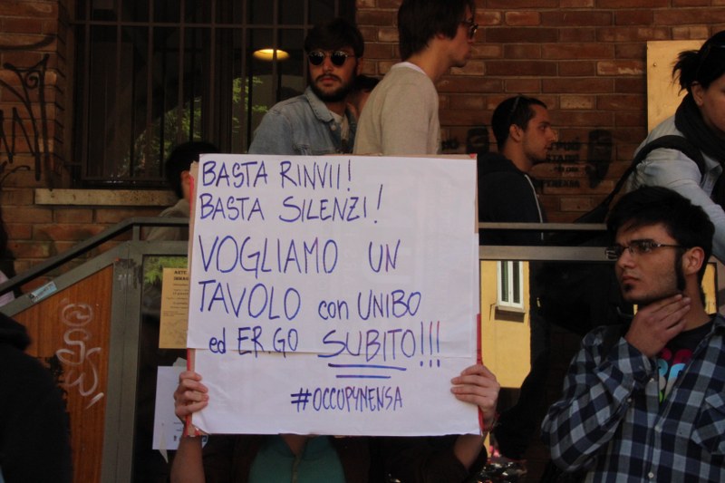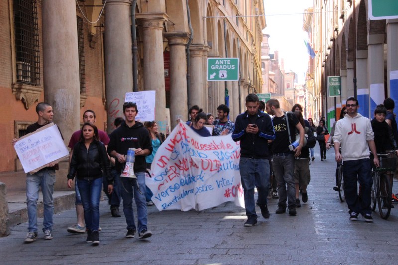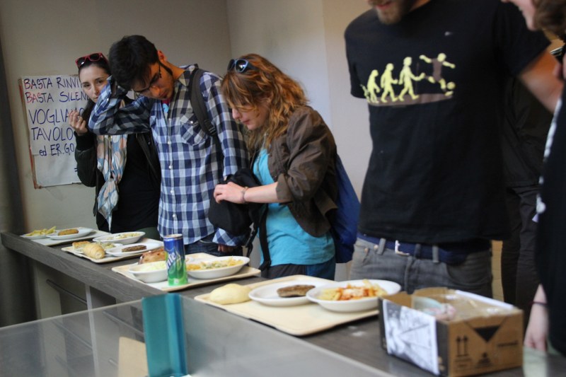 Bologna 15 mag. – Nuova autoriduzione del Cua alla mensa universitaria di piazza Puntoni: oggi durante l’iniziativa del collettivo era possibile pranzare con un pasto completo a tre euro, invece dei sei previsti da listino. “Non è una cifra che ci siamo inventati noi” ci spiega Mariele, “le mense universitrie in Italia costano tutte tra i 3 e i 4 euro, la nostra è la più cara”. Da mesi gli studenti chiedono un incontro con Ergo, l’ente per il diritto allo studio, trovando però per ora solo porte chiuse. Da parte del rettore Ivano Dionigi c’era stata una certa apertura sul tema in passato, con la promessa di aprire un percorso di incontri, ma poi nulla è successo.