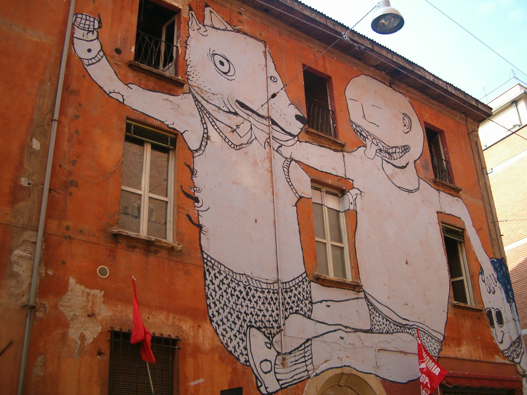 Non c’è solo il murales di via Fioravanti. Un’opera di Blu è stata cancellata anche in via Zanardi 106, sede di una vecchia occupazione del centro sociale Crash. Ma Blu non è l’unico writer che ha deciso di mettere in campo questa protesta.