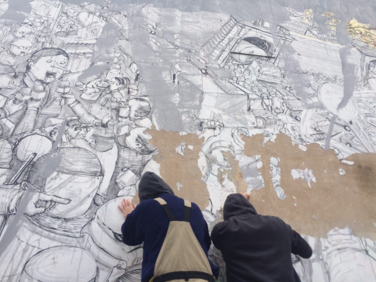 All’inizio dell’opera di cancellazione del muro all’Xm24 gli agenti di polizia municipale sono passati a chiedere che stesse succedendo. Avrebbe risposto lo stesso Blu, impegnato con rullo e spatola: “È un muro vecchio e brutto, stiamo solo sistemando”. Successivamente i vigili sono tornati. “Il proprietario di questo muro è il Comune, mi chiedono di capire che sta succedendo”, ha detto un agente. “Stiamo eliminando il degrado”, è stata la risposta sarcastica di un attivista. “Ma avete chiesto il permesso all’autore?”, ha domandato il vigile. A quel punto gli è stato messo in mano il volantino con la spiegazione del gesto.