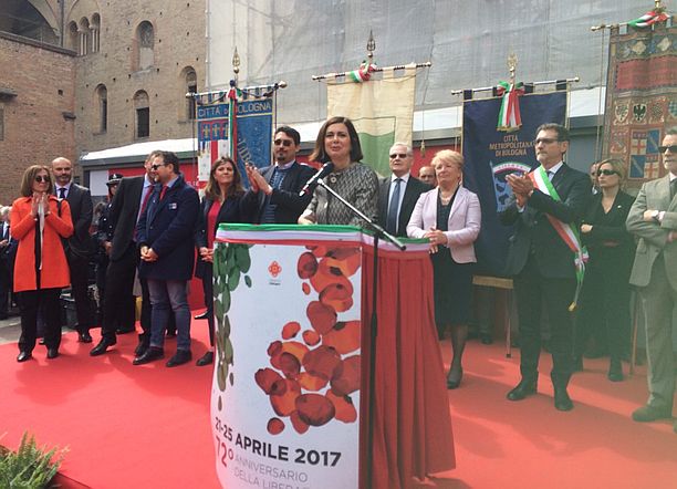 Il ruolo delle donne. Nel corso delle celebrazioni del 72 esimo anniversario della Liberazione a Bologna, dopo aver parlato in Piazza Nettuno, la presidentessa della Camera, Laura Boldrini è andata a visitare la scuola di via Turati in cui è stato dipinto un murales raffigurante la partigiana bolognese Irma Bandiera, e poi si è spostata a Villa Spada, altro luogo simbolo della Resistenza. “Lì è ricordata la morte di 128 donne bolognesi, donne coraggiose a cui bisogna rendere merito. Insieme ai padri della Repubblica ci sono le madri della Repubblica, e vanno onorate. Insieme ai partigiani c’erano le partigiane, donne misconosciute, tenute per vent’anni sotto il giogo: la Liberazione per loro è stata una riscossa, il riconoscimento dell’esistere come soggetto, anche nell’entrare in una cabina elettorale”. Quindi, ha concluso Boldrini, “siamo il 50% della popolazione, non possiamo essere messe da parte, e bisogna dare un riconoscimento a quelle donne che hanno creato la Repubblica”.