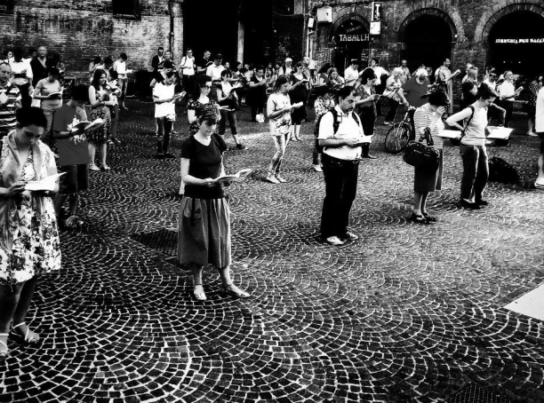 Non è la prima volta che a Bologna si organizzano manifestazione del genere. La sera del 24 giugno scorso in piazza Re Enzo c’è stata la veglia in piedi dei Manif Pour Tous, il movimento cattolico nato in Francia contro i matrimoni gay. Sotto palazzo Re Enzo erano in 50, schierato geometricamente, un libro in mano, in prima fila i militanti di Forza Nuova.
