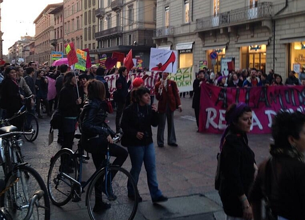 Bologna, 11 apr. – Lesbiche, gay, trans, femministe, e non solo. Sono state più di 500 le persone che si sono date appuntamento in Piazza Re Enzo per dire “no” all’annunciato sgombero di Atlantide dal cassero di Porta Santo Stefano. Con loro attivisti e attiviste di un po’ tutto il movimento bolognese, e anche la capogruppo di Sel in Comune, Cathy La Torre. Tanti i cartelloni e gli striscioni per difendere questa realtà: “Contro la violenza maschile più spazio alle donne”, “Atlantide resta dov’è”, “Per respirare aria di libertà, spazi femministi e lesbici in tutta la città”.