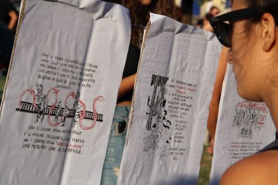 Al megafono, di fronte al Stazione centrale di Bologna, si sono alternati attivisti di ritorno dal presidio di Ventimiglia e migranti che hanno raccontato le loro difficoltà in Italia. Un luogo, quello della Stazione centrale, scelto non a caso. “Ci troviamo lì – scrive su facebook Giorgio Simbola della Coalizione Internazionale Migranti Rifugiati e Sans-papiers – a pochi metri dai binari, dai binari seguiti a piedi per centinaia di chilometri, attraverso la Serbia e la Macedonia dai profughi siriani, dai binari che così tanto spazio occupano, assieme alle valigie di cartone, nella nostra memoria di popolo migrante”.