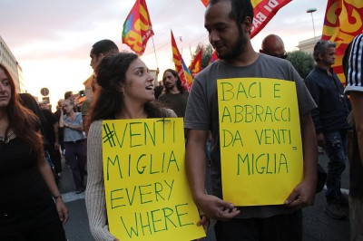 Bologna, 6 sett. – Un presidio di due ore a cui hanno partecipato 400 persone, poi in serata un corteo che si è concluso in piazza dell’Unità. Gli attivisti di Bologna hanno risposto così alla chiamata del presidio di Ventimiglia, dove da mesi sono bloccati i migranti che dopo aver risalito la penisola tentano di andare in Francia. Con loro, a pochi passi dal confine, da tempo attivisti italiani e francesi tentano di organizzare la protesta contro il blocco delle frontiere e di migliorare la vita di quei migranti che, prima di riuscire ad aggirare i controlli della gendarmeria di Parigi, passano settimane se non mesi sugli scogli.