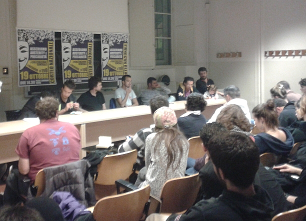 4 ott. – Due giorni e due notti, una scommessa politica ma anche logistica. Il 18 ottobre lo sciopero generale dei sindacati di base, poi il tentativo di acampada. Il giorno dopo, il 19, il corteo che punterà alla “sollevazione generale” e “all’assedio dei palazzi del potere”, due parole d’ordine che al loro interno contengono il senso della due giorni romana del prossimo ottobre. Non è finita: dopo il corteo del sabato e il tentativo di arrivare sotto i palazzi del governo, ci sarà di nuovo un’acampada. “Proveremo a tenere la piazza per la notte, per questo da Roma ripartiremo il giorno dopo”. “Sappiamo che non sarà una passeggiata, ma su queste manifestazioni stiamo lavorando da tanto e in tutto il paese”, dice un sindacalista di base di fronte a 150 persone nell’Aula A di Scienze politiche, in Strada Maggiore. Un’assemblea cittadina, quella di ieri sera, indetta per spiegare le due giornate di ottobre. Le parole di apertura dedicate ai migranti morti a Lampedusa, “uccisi dallo sfruttamento neoliberista, un motivo in più per la nostra vendetta”. Poi una serie di interventi: InfoAut, Crash, Usb, Si Cobas, Asia Usb, Hobo e Cas. La sfida, dice un militante dell’autonomia, “è quella di rompere il piano simbolico. In questo paese serve una svolta, è sbagliato lamentarsi dicendo che non succede nulla da due anni, bisogna partire da quello che c’è e dalle lotte locali, metterle in rete e rilanciarle”. “Vogliamo prenderci e tenerci una piazza. Ci caricheranno? Lo sappiamo, ma noi staremo lì, e quanto torneremo nelle rispettive città la domenica del 20 ogni lotta avrà più visibilità e forza”.