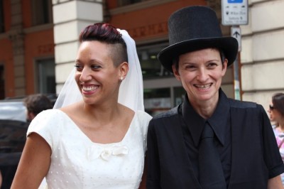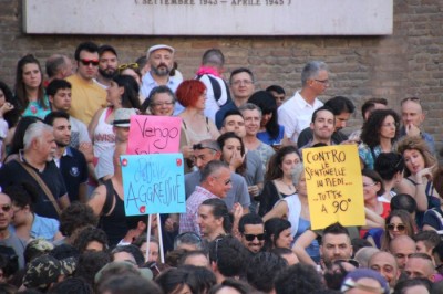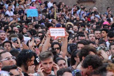 Dal palco ha parlato per prima Flavia Madaschi di Agedo, “la mamma di tutti i gay di Bologna” come l’hanno presentata dal palco. Dalla piazza si è levato un lungo applauso che sembrava un abbraccio per una donna provata in questo momento dall’età e dalla malattia. Madaschi ha ricordato che per molti gay e lesbiche gli altri 364 giorni all’anno sono difficili, soprattutto per i più giovani che non hanno il supporto della famiglia, ed è tornata a chiedere maggiore formazione sul tema per gli assistenti sociali. In seguito ha parlato anche Ilaria Trivellato delle Familige Arcobaleno che chiedono il riconosciumento di una genitorialità che per loro è già realtà. Sul palco per a prima volta anche gli sportivi di Boga. Per tutti in piazza Nettuno la richiesta è uguaglianza ma i partecipanti del Pride che abbiamo intervistato hanno opinioni diverse su matrimonio e unioni civili. C’è chi chiede adozione subito e chi considera invece un passo avanti la proposta del presidente del Consiglio Matteo Renzi sul riconoscimento delle unioni civili di coppie stesso sesso.