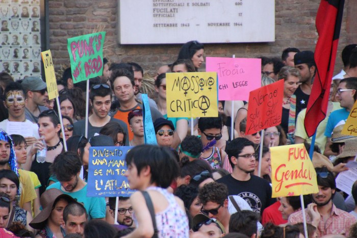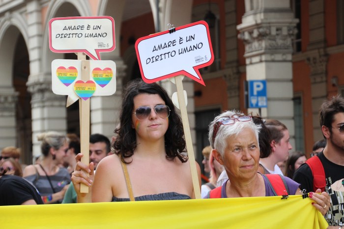 Dal palco ha parlato per prima Flavia Madaschi di Agedo, “la mamma di tutti i gay di Bologna” come l’hanno presentata dal palco. Dalla piazza si è levato un lungo applauso che sembrava un abbraccio per una donna provata in questo momento dall’età e dalla malattia. Madaschi ha ricordato che per molti gay e lesbiche gli altri 364 giorni all’anno sono difficili, soprattutto per i più giovani che non hanno il supporto della famiglia, ed è tornata a chiedere maggiore formazione sul tema per gli assistenti sociali. In seguito ha parlato anche Ilaria Trivellato delle Familige Arcobaleno che chiedono il riconosciumento di una genitorialità che per loro è già realtà. Sul palco per a prima volta anche gli sportivi di Boga. Per tutti in piazza Nettuno la richiesta è uguaglianza ma i partecipanti del Pride che abbiamo intervistato hanno opinioni diverse su matrimonio e unioni civili. C’è chi chiede adozione subito e chi considera invece un passo avanti la proposta del presidente del Consiglio Matteo Renzi sul riconoscimento delle unioni civili di coppie stesso sesso.