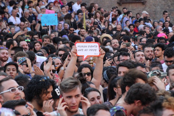 La contestazione da parte degli attivisti di Atlantide c’è stata ma con il suo discorso dal palco l’assessore Matteo Lepore ha ricevuto anche qualche applauso. Le attiviste che occupano il cassero di Porta Santo Stefano e che rischiano lo sgombero tra due giorni hanno fischiato e lanciato slogan dalla Sala Borsa dove hanno appeso lo striscione “A conquistare la fucsia primavera”. Dalla loro parte anche il Cassero con il discorso di Branà, terminato poco prima, che ha ricordato quando 32 anni fa il Comune ha dato il Cassero all’allora Circolo Frocialista. “In nome di quei compagni che c’erano allora dobbiamo essere al fianco di chi resiste allo sgombero” ha detto Branà. Matteo Lepore ha risposto “Uno spazio di libertà per voi in città ci deve essere, io sono qui per trovare un confronto”. Poi le promesse su una maggiore attenzione ai problemi quotidiani che le persone Lgbt si vivono.