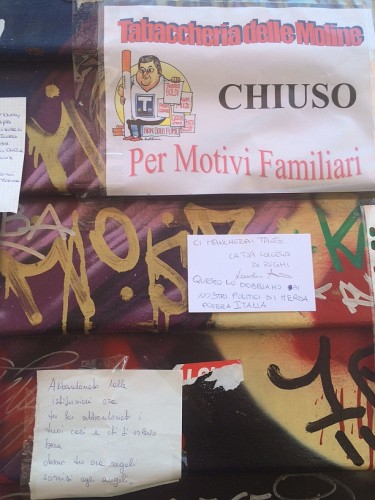 Attaccati alla serranda della tabaccheria ci sono però anche messaggi di rabbia verso la politica. Nelle lettere che ha lasciato prima di togliersi la vita Landi aveva parlato delle difficoltà economiche che stava affrontando. Più volte agli amici aveva raccontato delle sue preoccupazioni legate alle difficoltà burocratiche incontrate nell’ottenere tutti i permessi necessari per ampliare la tabaccheria che gestiva assieme alla moglie.