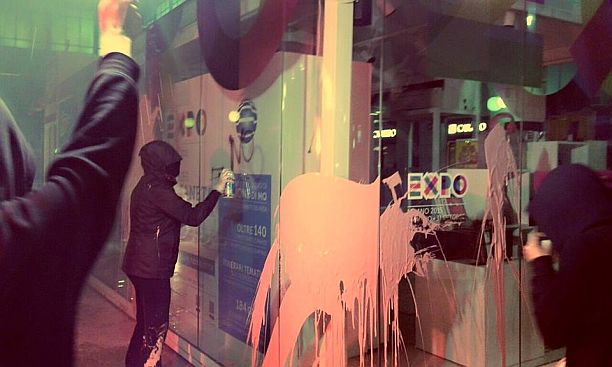 “Sanzionato anche l’infopoint Expo della Stazione Centrale! Non vogliamo più lavoro gratuito, sfruttamento e speculazione!”. Facebook collettivo Hobo.