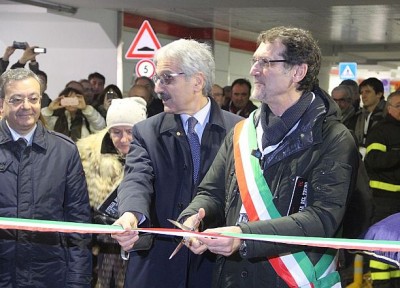 Bologna, 22 sett. – Una nuova infrastruttura a sette metri di profondità per consentire ai passeggeri della stazione di Bologna di arrivare con maggiore rapidità e comodità, con taxi o auto private, vicino ai binari alta Alta velocità e a quelli di superficie. E’ il “Kiss & ride“, inaugurato oggi e utilizzabile per ora solo per taxi e auto a noleggio con conducente. Entro gennaio 2015 avranno accesso anche le auto private. La sua apertura è avvenuta con un anno di ritardo rispetto alle previsioni.