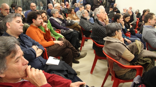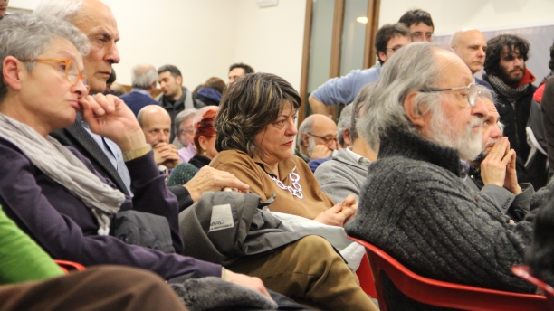 Al di là delle diverse provenienze politiche dei presenti, a sentire le conversazioni in sala e gli interventi al microfono l’idea di fondo è più o meno la stessa per tutti: la lista Tsipras è l’ultima chance per la sinistra di contare qualcosa in Europa, “altrimenti – dice Marina D’Altri – la nostra sarà solo testimonianza”. Tra i temi da affrontare in campagna elettorale si cita quello della scuola pubblica, quello dei beni comuni e del referendum sull’acqua, e quello del lavoro. C’è chi parla della lotta dei facchini nella logistica e chi del caso Electrolux (“Dobbiamo dire a quegli operai che noi le delocalizzazioni non le vogliamo – dice Soglia – altrimenti a nessuno fregherà un cazzo dei nostri discorsi. Partiamo dai problemi concreti”). Arrivano anche due frecciate, entrambe rivolte garbatamente a Sel. “Non vorrei ritrovarmi con gente che voterà ‘sì’ al People Mover”, attacca Vanni Pancaldi. Poi tocca al giovane rifondarolo Simone Gimona: “Ricordatevi che il programma del partito di Tsipras, Syriza, chiede la nazionalizzazione delle imprese strategiche, non come succede a Taranto con l’Iva di Riva appoggiato da certa sinistra”. Per il resto non vengono mai citati i partiti concorrenti tranne una volta il Pd, ma di sfuggita. In sala non si sente né il nome di Renzi né quello di Grillo o di Berlusconi, e nemmeno qualcuno torna sul passato a dir poco problematico, visti i risultati elettorali, della sinistra italiana.