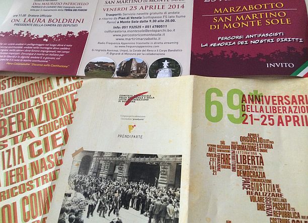 A Marzabotto, nei luoghi della strage di Monte Sole, il 25 Aprile durante la mattinata si terranno, come da tradizione le Celebrazioni ufficiali con il discorso della Presidente della Camera Laura Boldrini. Nel pomeriggio, all’interno dell’area del Memoriale del Parco, si terrà un fitto programma di iniziative culturali, artistiche e musicali.