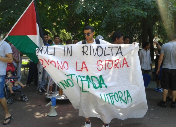 Bologna, 5 lug. – “Palestina libera, intifada vincerà”, in italiano e in arabo. Settanta persone più i bambini hanno manifestato in Piazza dell’Unità a favore dei palestinesi e contro l’attacco israeliano di questi giorni. Presenti gli occupanti Social Log di via Mario de Maria e Mura di Porta Galliera, Crash e Cua.