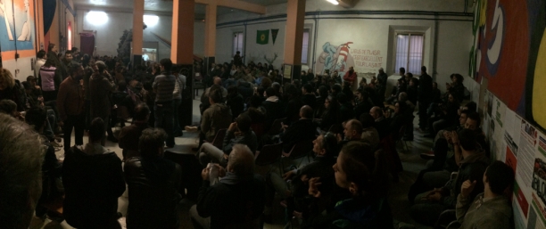 Ad aprire le danze, dopo un paio di interventi, un video messaggio di De Pieri, impossibilitato a intervenire fisicamente perché agli arresti domiciliari. Otto minuti per lanciare la sua proposta: una lista civica per mettere assieme i vari progetti anti-Pd che si stanno accumulando in città. Una lista che sia capace di portare “quelli del basso” a conquistare le Due Torri “mandando via la casta che governa Bologna”, “la cricca dell’alto fatta di politici, banchieri, rettori, dirigenti di fondazioni, baroni universitari, padroni della rendita”. Basso contro alto quindi. Una lista, ha sottolineato De Pieri, che sia dichiaratamente “contro il Pd e la destra“, e che mandi definitivamente in soffitta anche l’esperienza del centro sinistra, “che ha fallito e non deve tornare più”. “Non ci deve essere più separazione tra chi lotta e chi vota”, ha detto ancora De Pieri, perché ad esempio il ‘no’ al People Mover si fa “bloccando i cantieri” ma anche mettendo una ‘x’ sulla scheda elettorale. “Dobbiamo fare entrambe le cose, votare e lottare. Questa volta non permetteremo alla sinistra di buttare via l’ennesima occasione della sua vita”.