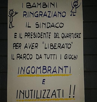 C’è anche chi ha postato su facebook un cartello polemico destinato al Comune di Bologna e al Quartiere.