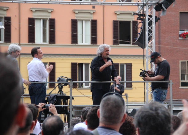 Beppe Grillo durante il suo ultimo comizio a Bologna