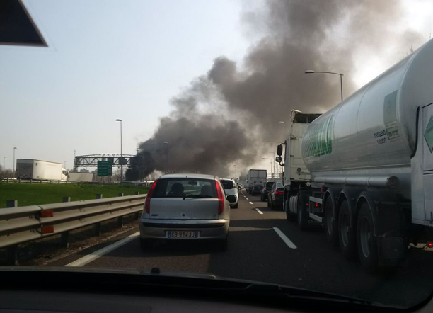 L’autoarticolato è fermo all’uscita Fiera dell’autostrada in direzione nord.