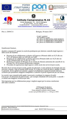 La preoccupazione delle mamme e dei papà delle scuole Don Bosco non è immotivata: a marzo 2017 una bimba di quattro anni era riuscita ad allontanarsi da sola. La vicenda si era conclusa con il ritrovamento della bimba, in lacrime, da parte di una mamma che si stava recando a scuola a prendere il figlio e la diffusione di un comunicato firmato dalla dirigente scolastica, la dottoressa Marina Battistin, nel quale venivano comunicate le azioni che la scuola avrebbe predisposto in materia di controlli. Nella circolare diffusa il 30 marzo del 2017 e destinata ai genitori dei bimbi iscritti al plesso di infazia e primaria di via Vizzani, Battistin elencava i seguenti provvedimenti: presenza un collaboratore scolastico all’ingresso e all’uscita, una richiesta al Comune di un sistema di chiusura autonomo dei cancelli e un sistema di registrazione degli ingressi e delle uscite effettuati dai servizi del post scuola.