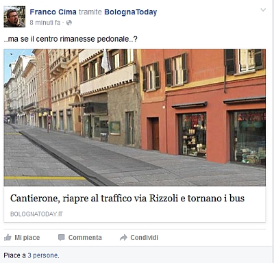 E mentre si annuncia la riapertura c’è già chi si fa sedurre dalla tentazione pedonale e probabilmente non è l’unico. Il segretario del Pd del Navile, condividendo la notizia su Facebook, si fa questa domanda: “E se il centro rimanesse pedonale?”