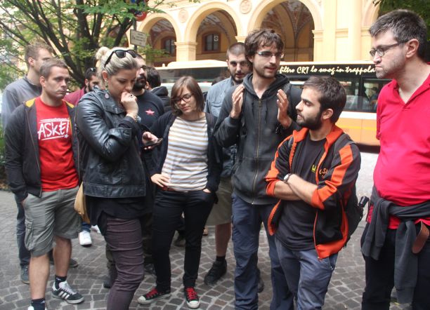 A prendere la parola per prima, nella conferenza convocata in Piazza Cavour di fronte alla sede cittadina di Bankitalia, è Martina, attivista di Làbas che nell’ottobre 2011 fu travolta da una carica delle forze dell’ordine e proprio di fronte a Bankitalia perse quattro denti a causa dei colpi di manganello ricevuti. Martina ricorda la manifestazione antifascista di domenica 5 ottobre, quando centinaia di bolognesi hanno sfilato contro le sentinelle in piedi. “E’ stata una giornata importante e di grande partecipazione. La città ha detto ‘no’ al fascismo, e lo dirà ancora”. Gli attivisti rivendicano tutta la giornata, tafferugli compresi. “Siamo partiti in 500 e siamo tornati in 1000”, spiega Cristopher. Quali pratiche si vedranno in piazza “lo deciderà chi andrà in piazza”. “E se sarà necessario i fascisti li cacceremo di nuovo”, aggiunge un militante.