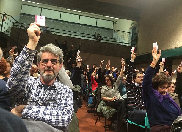 “Per il consiglio direttivo abbiamo preparato una lista di 30 nomi – ha spiegato ieri sera dal palco Mario Bovina – Una lista sicuramente non perfetta ma abbiamo tentato di dare rappresentanza a tutti”. E infatti nella lista ci sono esponenti di Sel e Sinistra italiana, ex iscritti del partito democratico, civatiani, militanti del centro sociale Tpo, rifondaroli, attivisti del mondo della scuola. I trenta nomi sono stati votati all’unanimità dai duecento presenti ieri sera nella palestra comunale di via Faenza 4, quartiere Savena. Due gli astenuti, nessun contrario. Una sola richiesta. “Per favore presentatevi perché non vi conosco tutti”, ha detto una signora dal pubblico. E così, uno alla volta microfono alla mano, i 30 del consiglio direttivo sono saliti sul palco e hanno parlato di sé.