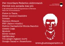 19 set. – Sabato 22 settembre all’Ippodromo di Ferrara ci sarà “Parole e musica per Federico”, per ricordare il ragazzo ucciso sette anni fa durante un controllo di polizia. Dalle 16 alle 24 si alterneranno sul palco molti artisti, proprio a due passi dal luogo in cui, il 25 settembre 2005, Aldrovandi era stato fermato dagli agenti, ora condannati in via definitiva per eccesso colposo in omicidio colposo.