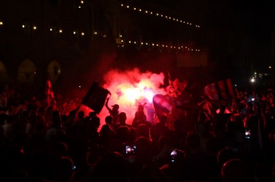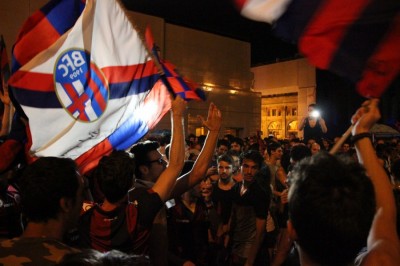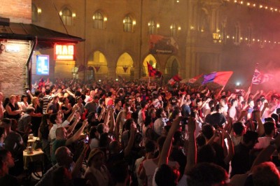 Bologna, 9 giu. – “E’ stata una partita sofferta” è la frase più ripetuta dai tifosi in festa in piazza Maggiore. Ma il Bologna ce l’ha fatta: con l’1 a 1 con il Pescara i rossoblu si sono aggiudicati la promozione, sono la terza squadra insieme a Carpi e Frosinone a passare in serie A. Dopo 94 minuti di gioco è stato sufficiente un pareggio grazie al miglior piazzamento in campionato.