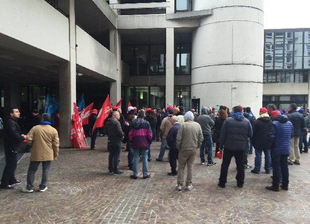 lavoratori Coop Costruzioni in presidio ieri davanti alla sede della Regione