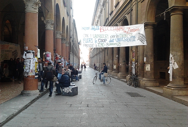 Bologna, 31 mar. – Sciopero dei portieri dell’Università di Bologna in appalto a Coopservice. In via Zamboni, da Palazzo Paleotti a Piazza Puntoni, sono stati “sigillati” tutti gli ingressi dell’Alma Mater e le attività universitarie della zona sono state di fatto paralizzate. La vertenza Coopservice dura da mesi. I lavoratori lamentano di essere pagati 4 euro netti l’ora, “e i nuovi assunti guadagnano anche meno di tre euro“. A dare manforte ai portieri i collettivi universitari Cua e Hobo. Lo sciopero continuerà anche domani.