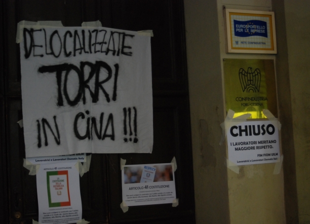 Gli uffici, a causa del presidio, sono rimasti chiusi. Sulla porta sono stati attaccati cartelli e striscioni. Uno per ricordare l’articolo 41 della Costituzione, che garantisce la libertà dell’iniziativa economica privata, che però “non può svolgersi in contrasto con l’utilità sociale“; l’altro per invitare il presidente di Unindustria ad andarsene in Cina. Alle 9,30 – si legge in un comunicato congiunto di Cgil, Cisl e Uil – il direttore di Unindustria Massimo Balzani e il vice direttore Enzo Poggi hanno incontrato una delegazione sindacale composta anche da tre lavoratori della Dometic e, al termine dell’incontro, è stato sottoscritto un verbale che impegna tutte le parti ad un ruolo attivo, a partire dall’incontro del 5 settembre prossimo, al fine di raggiungere un accordo. Alle 10,30, anche sulla base degli impegni sottoscritti nel verbale letto dai lavoratori in Corso Garibaldi (dove nel frattempo erano giunti anche i manifestanti che presidiavano gli uffici di via Punta di Ferro), il presidio è stato sciolto”.