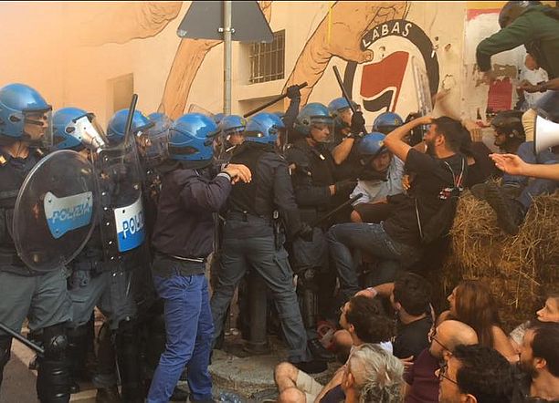 Le forze dell’ordine in assetto antisommossa con i blindati hanno circondato l’ex caserma occupata in via Orfeo poco dopo le 7.00 del mattino e chiuso la strada, mentre all’ingresso principale decine di attivisti si sono fatti trovare seduti davanti al cancello, pronti alla resistenza. Quando la polizia si è avvicinata al blocco per spostare i militanti questi hanno opposto resistenza e sono volate anche delle manganellate a cui è stato risposto con fumogeni e petardi. I tafferugli sono durati alcuni minuti e alla fine la polizia è riuscita ad entrare nella struttura. Lo spazio occupato ha ospitato in questi anni diversi progetti e attività sociali, ad esempio il progetto del dormitorio sociale autogestito ‘Accoglienza Degna’, raccogliendo molto apprezzamento tra i residenti del quartiere.