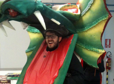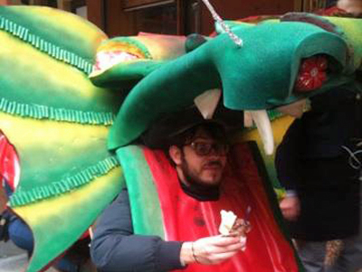 Il nostro Drago è goloso e questa mattina ha deciso di prendere un gelato dal Gelatauro. Cercatelo, seguitelo, fotografatelo e vincerete ricchi premi. Qui sotto mentre attende il suo cono doppio.
