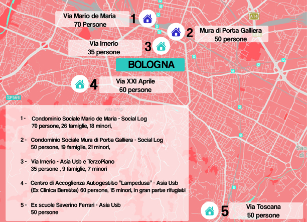 Bologna, 15 lug. – Sfrattati, pignorati, senza possibilità di pagare un affitto, a Bologna sono 265 le persone che hanno scelto l’occupazione come soluzione per la loro situazione abitativa, tra loro più di 60 sono bambini. 145 persone hanno deciso di occupare con il sindacato inquilini Asia Usb (22 sono minori) in via Irnerio, via Toscana (ex scuole Ferrari) e in via XXI Aprile (ex Beretta). 120 con lo sportello Social Log, realtà vicina al centro sociale Laboratorio Crash (40 minori), in via Mario de Maria e in Mura di Porta Galliera.