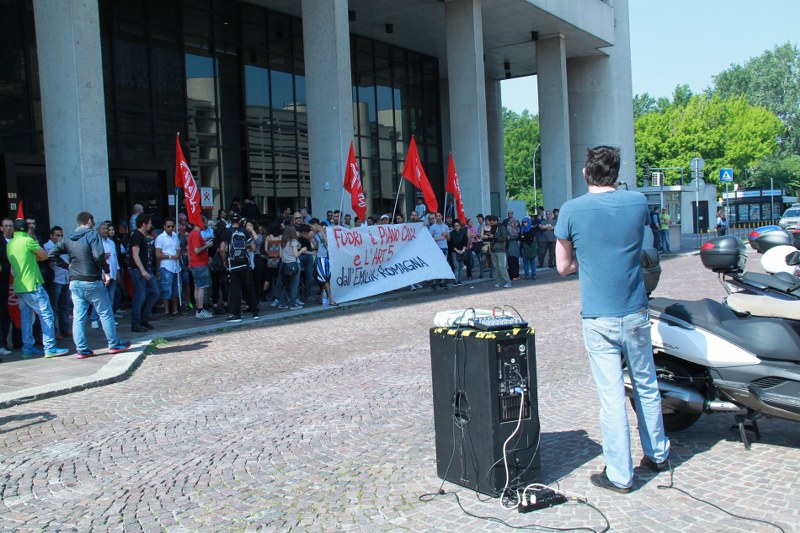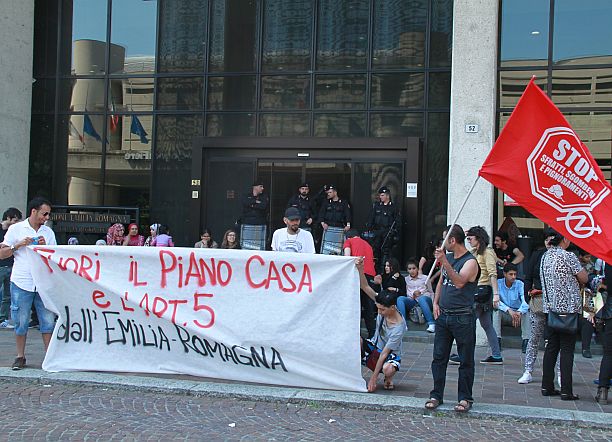 Bologna, 8 mag. – “Casa, reddito, dignità”, queste le parole d’ordine, urlate dal centinaio di persone presenti oggi al presidio di Social Log di fronte ai palazzi della Regione. La loro richiesta è l‘abrogazione del Piano Casa e dell’Articolo 5 almeno in Emilia-Romagna, se non in tutta Italia. Cosa vogliono? “Vogliamo tutto: salario garantito e soprattutto un tetto” ripetono a squarcia gola, fino a riuscire a strappare un tavolo in Regione con l’assessore alle politiche di welfare e abitative dell’Emilia Romagna, Elisabetta Gualmini, che li ha incontrati per circa un’ora.