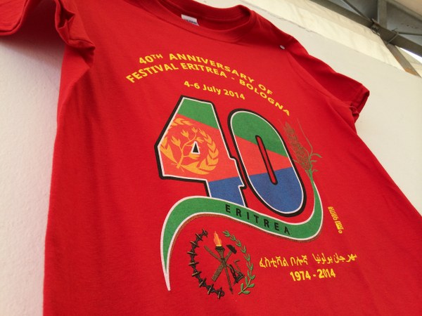 “Siamo qui a Bologna per commemorare il primo festival che facemmo qui nel 1974” dice Derres Araia, portavoce della comunità eritrea che ha il compito di curare i rapporti con la stampa. E’ lui che, chiamato telefonicamente, raggiunge a piedi l’ingresso e accompagna, quasi per mano, i cronisti dentro l’area del festival, protetta da due ordini di recinzioni. “Sono con me” dice in tigrino, una delle lingue ufficiali eritree, agli uomini dell’EriBlood. Sta per sangue d’Eritrea: “Siamo eritrei e ci siamo conquistati l’indipendenza col sangue” spiega uno di loro. Sono giovani, vengono da tutti i paesi della diaspora eritrea, indossano una maglietta nera, sul petto hanno disegnato un pugno rosso e sulla schiena, oltre al nome EriBlood, il 52. Il numero non rappresenta una data: è il corrispettivo numerico delle iniziali di Eri Blood (E = 5; B = 2). Sono volontari (“Non ci paga il governo” dicono) e sono incaricati della sicurezza all’interno del festival.