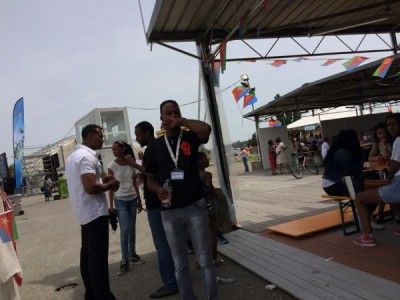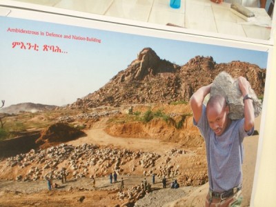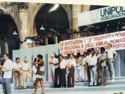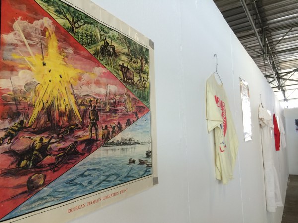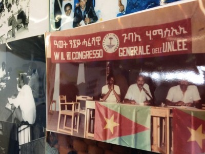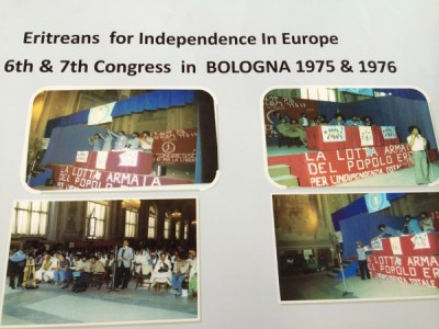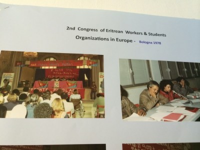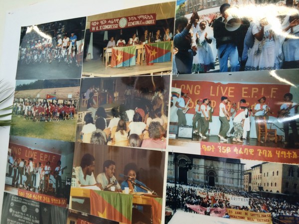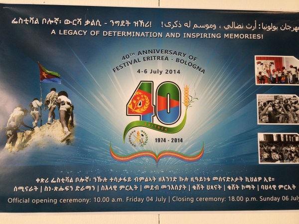 Nel grande piazzale, a pochi metri dall’Estragon, è stato montato il palco. Sul lato sinistro ci sono gli stand delle comunità eritree in Italia, Olanda, Norvegia, Stati Uniti, qualche stand commerciale, e lo spazio dell’organizzazione giovanile del partito unico di Afewerki, il Fronte Popolare per la democrazia e la giustizia, nato dopo la vittoria del 1991 dal Fronte popolare per l’indipendenza del popolo eritreo. Sul lato destro i ristoranti e il Museo Bologna, la mostra di foto, manifesti, volantini e gadget delle decine di edizioni del festival eritreo che si è tenuto a Bologna dal 1974 al 1991.
