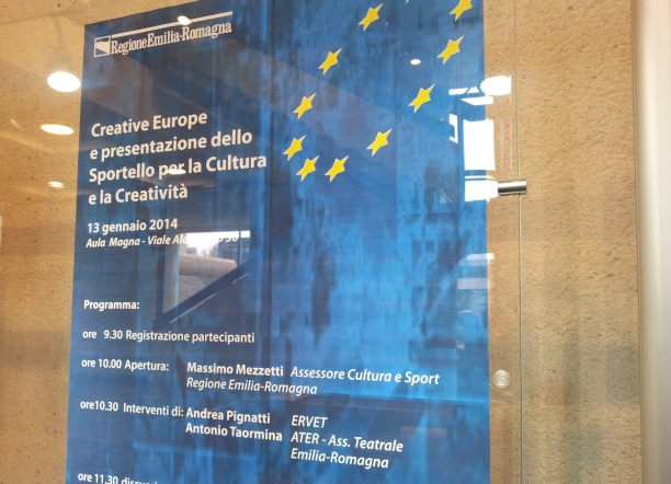 Chi ha un’idea e vuole misurarla sui parametri del programma europeo, può rivolgersi allo Sportello per la Cultura e la Creatività attivato da Ervet e Ater, spiega Antonio Taormina. Sarà raggiungibile tutti i giorni dalle 9 alle 13 allo 051.6450411/5273054 e via mail a sportellocultura@ervet.it/sportellocultura@ater.emr.it