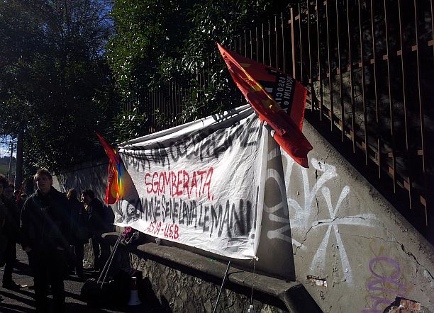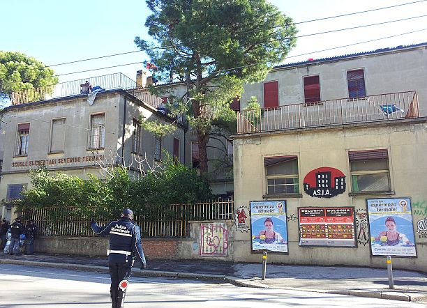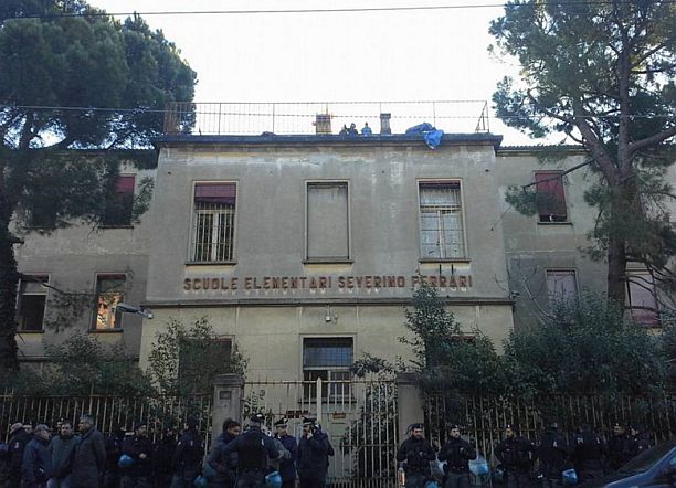 Nelle prime fasi dello sgombero c’è stata tensione fra le forze dell’ordine e alcuni attivisti del sindacato Asia Usb, che volevano attaccare uno striscione (‘Basta sgomberi, casa per tutti’) al cancello dell’edificio. Dopo un breve contatto in mezzo alla strada, sono stati respinti dal lato opposto di via Toscana e la situazione si è tranquillizzata. A partire dalle 9, quasi tutti gli ingressi allo stabile sono stati bloccati con grate metalliche da operai di una ditta incaricata. A quanto risulta, nella ex scuola viveva una cinquantina di persone. Molti si sarebbero allontanati quando sono arrivate le forze dell’ordine, forse per non farsi identificare. All’interno sarebbero rimasti in meno di 30, dei quali una dozzina sul tetto. Si tratta, secondo Asia Usb, per la maggior parte di romeni e magrebini, oltre a due ungheresi, quattro italiani e alcuni balcanici.