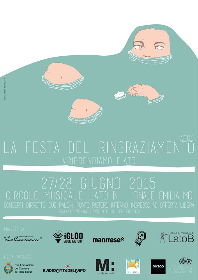 Bologna, 25 giu. – “Il sisma è una piaga che più o meno è stata sanata”, anche se “i danni rimangono”. Queste le parole di Raffaele “Raffo” Marchetti, tra gli organizzatori della Festa del Ringraziamento a Finale Emilia (MO). Una due giorni di concerti, cibo e birre con ingresso a offerta libera: sabato 27 giugno dalle 15.00 alle 2.30 e domenica 28 giugno dalle 15.00 alle 24.00 presso il Circolo Musicale Lato B. Nell’evento facebook Capra – che è tra gli organizzatori – scrive: