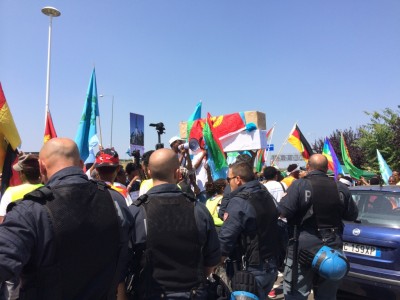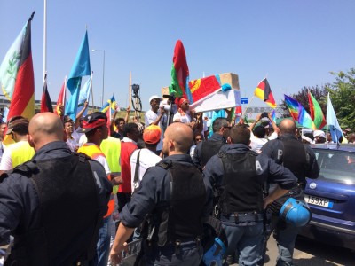 Per tutta la mattinata la situazione davanti al cancello del Parco Nord è stata piuttosto tesa. I manifestanti, arrivati in forze (più di un centinaio) da tutta Europa, volevano ripetere quanto fatto ieri: parlare attraverso l’impianto audio montato su di un furgone con i “fratelli” che partecipavano al festival. “Il questore ha vietato l’utilizzo dell’impianto” hanno ripetuto per tutta la mattinata i funzionari di Piazza Galileo. Inutili i tentativi di mediazione dell’assessore Amelia Frascaroli.