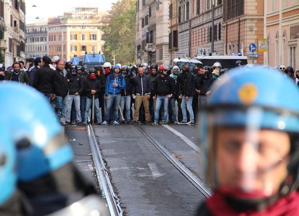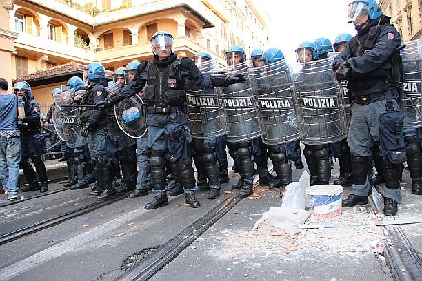 19 ott. – Casapound ha lanciato sassi e bottiglie in direzione del corteo. E’ accaduto a pochi passi dalla sede del movimento di estrema destra, all’altezza di via Napoleone III. Protetti da caschi e armati di bastoni, da dietro i cordoni della polizia, i militanti della formazione di estrema destra hanno provocato i manifestanti . Il corteo è proseguito.