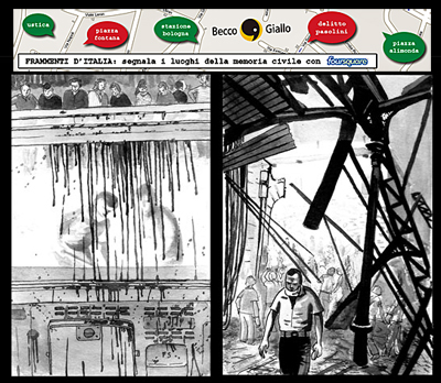 “In questi cinque anni di lavoro, ricostruendo questi frammenti di storia italiana, da Ustica alla stazione di Bologna, dall’omicidio Pasolini a Piazza Alimonda, ci siamo resi conto di aver catturato con essi anche alcuni luoghi, e assieme ai luoghi – inevitabilmente – anche le persone” scrive la casa editrice sul blog. Il progetto si sviluppa anche su Twitter con l’hashtag #frammentiditalia.