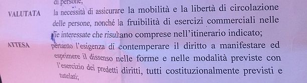 rimuovere le prescrizioni ingiustificate che abbiamo ricevuto sulla manifestazione di domenica 11 Giugno. Tali prescrizioni, che non contengono elementi di criticità specifici, se venissero accettate potrebbero essere estendibili a qualsiasi centro storico italiano e costituire un